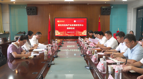 9月17日上午,黄石市光电产业发展研究中心揭牌仪式在我校科技大楼505会议室举行。黄石市委常委、宣传部部长王玲,市委宣传部副部长、市社科联党组书记艾永晴、黄石市社科联专职副主席王晓燕,校党委副书记、校长雷儒金,党委副书记马列军等市校领导及相关部门负责人出席仪式。仪式由校党委常委、统战部部长肖六亿主持。