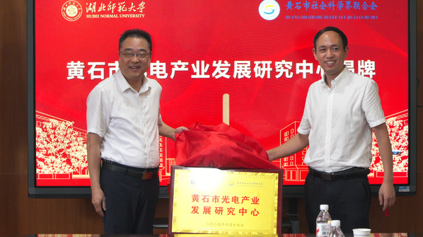 据悉,黄石市光电产业发展研究中心是由中共黄石市委宣传部、黄石市社科联与湖北师范大学共同筹建的科研平台,聚焦光电产业前沿技术、产业规划、人才培养及现代化治理等领域,旨在搭建校地协同创新平台,为黄石光电产业高质量发展提供全方位的智力支撑。此次揭牌是我校“学科服务地方产业”理念的关键实践。未来,学校将持续发挥多学科交叉融合优势,在光电产业的产业规划、技术研发等领域精准发力,为黄石产业升级和学校学科建设打造样板工程。