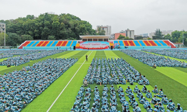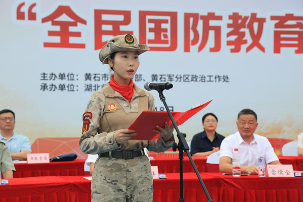 9月18日上午,黄石市2025年“全民国防教育日”主题活动在我校隆重举行。市委常委、宣传部部长王玲,市委常委、黄石军分区大校司令员贾宇峰,武警黄石支队支队长吴永刚,市委宣传部副部长、市文联党组书记、主席梅定祥,校党委副书记、校长雷儒金,党委副书记、副校长余涛等出席活动。市国防教育工作联席会议成员单位、各县(市、区)党委宣传部、新港园区党政办负责人以及我校约3600名学生共同参加活动。