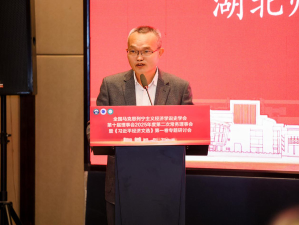 金秋十月,湖师再迎理论盛会。10月17至19日,全国马克思列宁主义经济学说史学会第十届理事会2025年度常务理事会暨《习近平经济文选》第一卷专题研讨会在我校顺利举行。本次会议由中国马克思列宁主义经济学说史学会主办,武汉大学马克思主义学院、湖北师范大学经济管理与法学院、湖北师范大学马克思主义学院、武汉科技大学马克思主义学院联合承办。来自中国社会科学院、清华大学、中国人民大学、武汉大学、华中科技大学等21所高校和科研机构以及《教学与研究》和《当代经济研究》等学术期刊的专家、学生共百余人齐聚一堂,共襄学术盛宴。