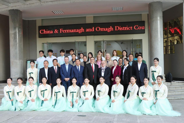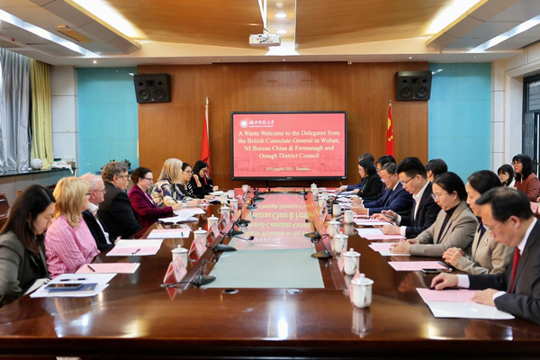 麦多明总领事对我校的热情接待表示感谢。他指出,今年正值英国驻武汉总领馆与中国驻贝尔法斯特总领馆建立十周年,而奥斯特大学与湖北师范大学依托孔子学院铸就的合作之桥,正是中英友好在地方层级深化发展的有力见证与务实成果。总领馆将一如既往地支持双方在教育、文化、青年交流乃至绿色经济等更广阔领域的深度融合。孔凯瑞总代表与麦克杜夫市长也对我校丰硕的国际交流成果给予高度评价,并表达了北爱尔兰及弗马纳欧马区进一步与我校深化各领域务实合作的积极意愿。