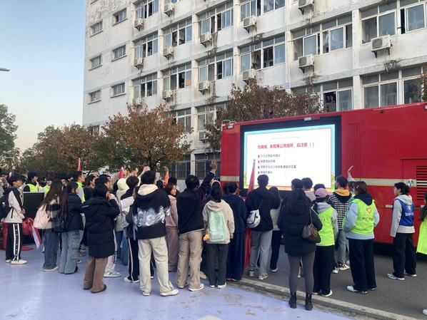 本次活动以“预防为主、生命至上--安全用火用电”为主题,设有疏散逃生、云梯救援、灭火器实操、消防知识问答、消防器材讲解、宿舍违规器具展示等环节,内容贴近实际、形式丰富多样。