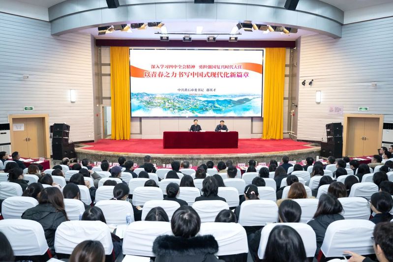 24日,省委宣讲团成员、市委书记郄英才来到湖北师范大学,围绕“深入学习四中全会精神、勇担强国复兴时代大任,以青春之力书写中国式现代化新篇章”主题,向学校师生宣讲党的二十届四中全会精神,进一步推动学习贯彻全会精神在黄石走深走实。