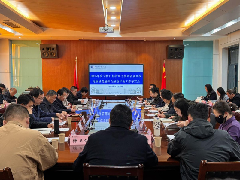 11月26日下午,学校在科技大楼505会议室召开2025年度目标管理考核暨高质量发展综合绩效评价工作布置会。校党委副书记、校长雷儒金出席会议并讲话,校内各单位主要负责人参加会议。会议由校党委常委肖六亿主持。