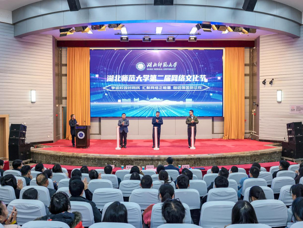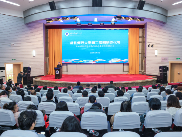 马列军在致辞中代表学校党委、行政对本届网络文化节的开幕表示热烈祝贺。他强调,高校是意识形态工作的重要阵地和文化创新的关键枢纽,应自觉肩负起新的文化使命。本届网络文化节主题鲜明、内容系统,既是学习贯彻习近平文化思想的具体举措,也为师生提供了展示才华、提升新媒体素养的重要平台。针对进一步推进校园网络文化建设,他提出三点希望:一是当好网络正能量的传播者,把红色基因、教育家精神、湖师文化融入作品创作;二是当好文明上网的践行者,自觉培育符合社会主义核心价值观的网络伦理;三是各部门、各学院要当好文化建设的推动者,加强统筹协作,打造更多立得住、叫得响、受欢迎的文化精品。他最后表示,要以本届网络文化节为契机,让校园文化在网络空间绽放更绚丽的光彩,为建设文化强国贡献湖师力量。