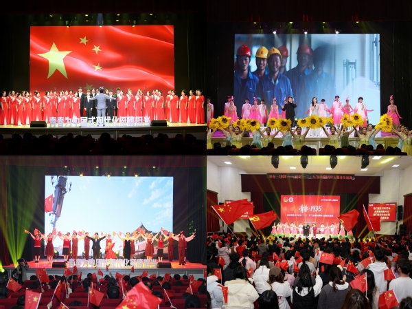 情景剧《呐喊》带观众重回1935年北平街头,再现当年青年学子振臂高呼、救亡图存的历史场景;舞蹈《无名的功勋》以刚柔并济的肢体语言,致敬那些在烽火岁月中默默奉献的无名英雄;诗朗诵《这束光》《峥嵘岁月》则深情讴歌了中国共产党指引方向、青年一代紧跟党走的坚定信念;合唱《我的祖国》《我们走在大路上》唱出了社会主义建设时期的豪情壮志,歌舞《春天的故事》《东方之珠》《七子之歌》《歌唱祖国》生动展现了改革开放的壮阔图景与港澳回归的民族自豪;歌曲《追寻》用悠扬旋律串联起不同年代中华儿女对民族独立、国家富强的执着追求。进入新时代篇章,舞蹈《有我》以昂扬舞姿展现当代青年勇担使命的精神风貌;歌曲联唱《如愿》《我爱你中国》传递出青年与祖国同向同行的赤诚;舞蹈《咏春》将中华优秀传统文化与青春创意相融,彰显文化自信;情境诗朗诵《时代新声》道出广大青年在各领域拼搏奋进的担当,共同诠释了新时代青年“请党放心、强国有我”的铮铮誓言;歌舞《新的天地》以恢弘的场面、激昂的旋律和深情的演绎,全景式展现了新时代国家发展的壮阔图景与民族复兴的光明前景。活动在全场师生齐唱《光荣啊,中国共青团》中落下帷幕,激昂的旋律凝聚着青春力量,将现场氛围推向高潮。