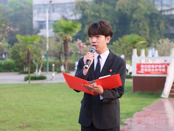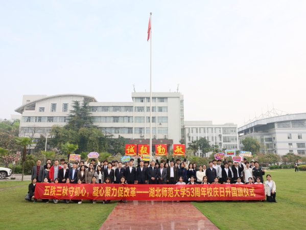 4月7日上午,学校在中心篮球场举行建校53周年校庆日升国旗仪式。校党委副书记、校长雷儒金出席仪式并讲话。校友代表、武汉艾千家生物科技有限公司董事长吴险峰,党政办公室、学生工作部(处)、校友工作处相关负责人,经济管理与法学院、生命科学学院全体领导班子成员和师生代表参加仪式。校党委常委、统战部部长肖六亿主持仪式。