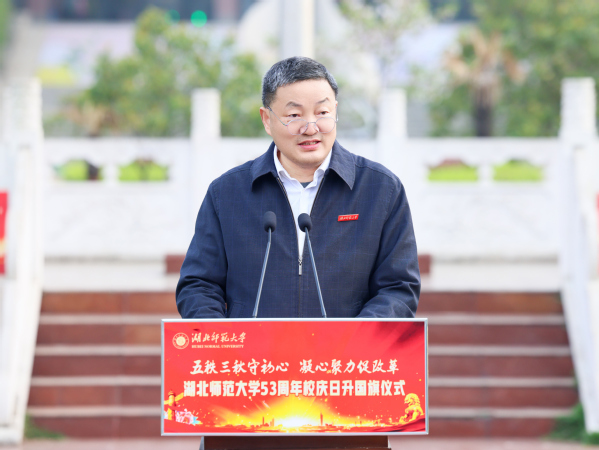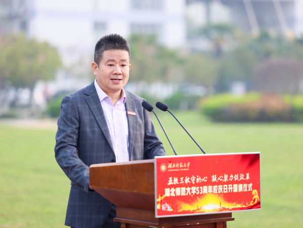 雷儒金在讲话中代表学校向全体教职员工、海内外校友及各界友人致以诚挚问候。他回顾了学校建校五十三年以来的发展历程,指出一代代湖师人扎根鄂东南,深耕教学科研,勇担育人使命,书写了薪火相传、弦歌不辍的动人篇章。
