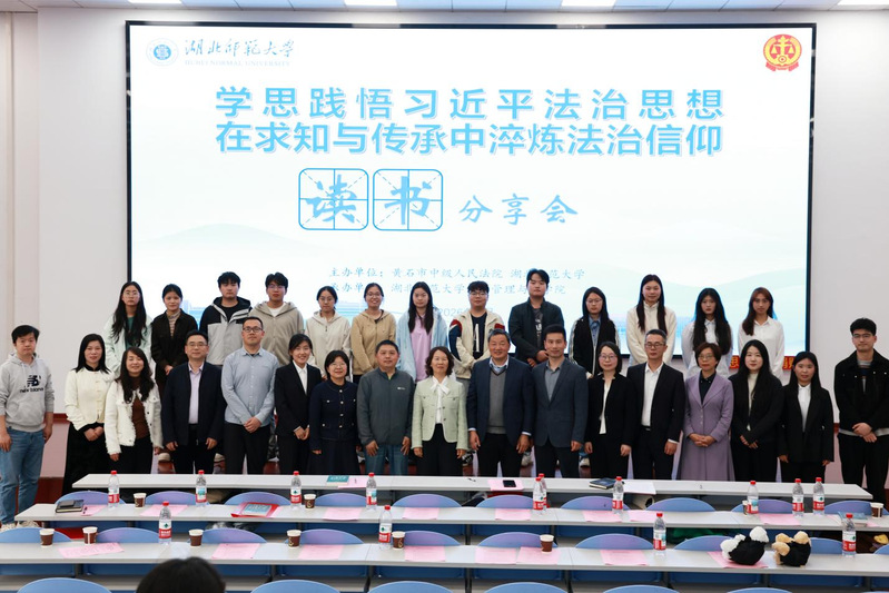 为深入学习贯彻习近平法治思想,深化校地共建合作,推动法学理论与司法实务深度融合,4月23日下午,我校与黄石市中级人民法院联合举办的“学思践悟习近平法治思想,在求知与传承中淬炼法治信仰”主题读书分享会,在达成大讲堂圆满举行。校党委副书记、校长雷儒金,黄石市中级人民法院副院长王晓丰,铁山区人民法院党组成员、执行局局长姜友炜,下陆区人民法院综合审判庭副庭长李晨以及经济管理与法学院师生代表、法院干警代表共同参与。本次活动由经济管理与法学院院长沈燕主持。