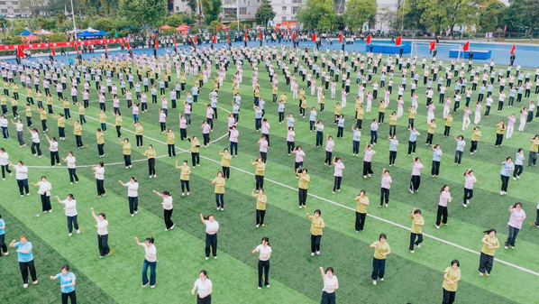 开幕式后,精彩纷呈的体育表演闪亮登场。活力四射的有氧健身操、优雅灵动的艺术体操、激情澎湃的啦啦操、热情奔放的体育舞蹈等节目轮番上演,充分展现了湖师学子朝气蓬勃、多才多艺的青春风采,将现场气氛推向高潮。